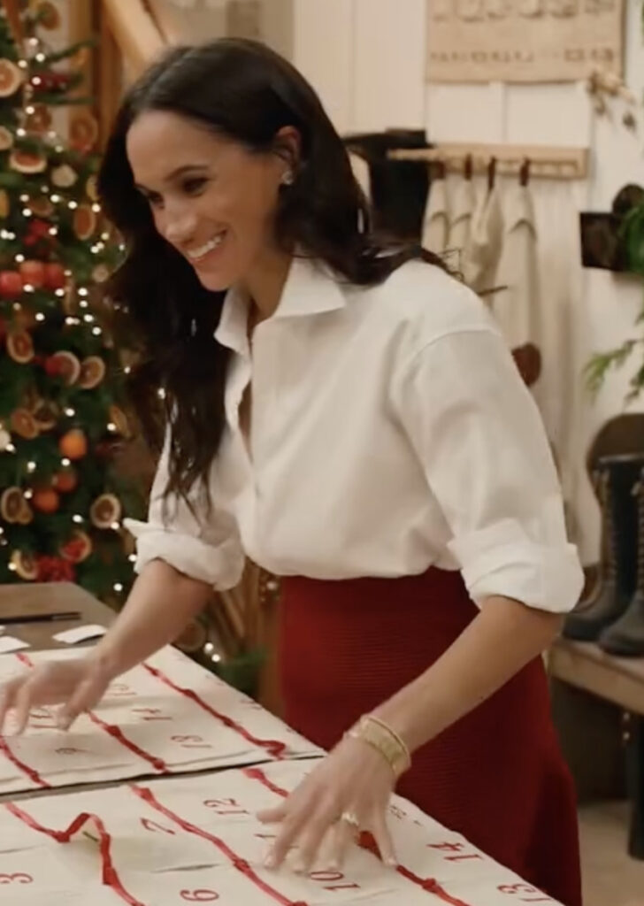 What stands out is how true this feels to Meghan’s current lane: thoughtful, inviting, and purpose-driven. It’s holiday content built around heart and hospitality, not just aesthetics. Still, for those of us who love the fashion moments, there’s plenty to look forward to — from her casual outdoor looks to her glamorous hosting wardrobe.