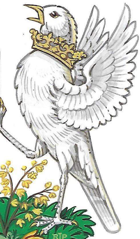 The white bird, a songbird, we see in the image to the right of the shield is referred to as The Supporter relating to the Duchess of Sussex. The lion being The Supporter relating to the Duke of Sussex.