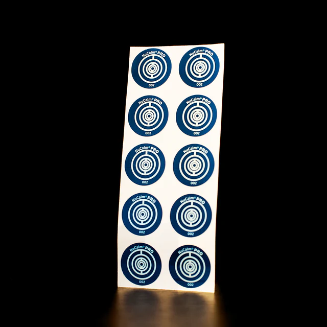 You may have noticed a round, blue disk on Meghan’s wrist. This is an energy disc from NuCalm – the Biosignal Processing Disc, $80 for a pack of 20. The discs are used along with a software subscription (see site for subscription packages).