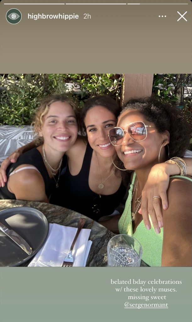 This week we were treated to a photo shared on Instagram by Meghan’s hair colorist, Kadi Lee. The friends were shown out celebrating Meghan’s birthday with author, Cleo Wade.