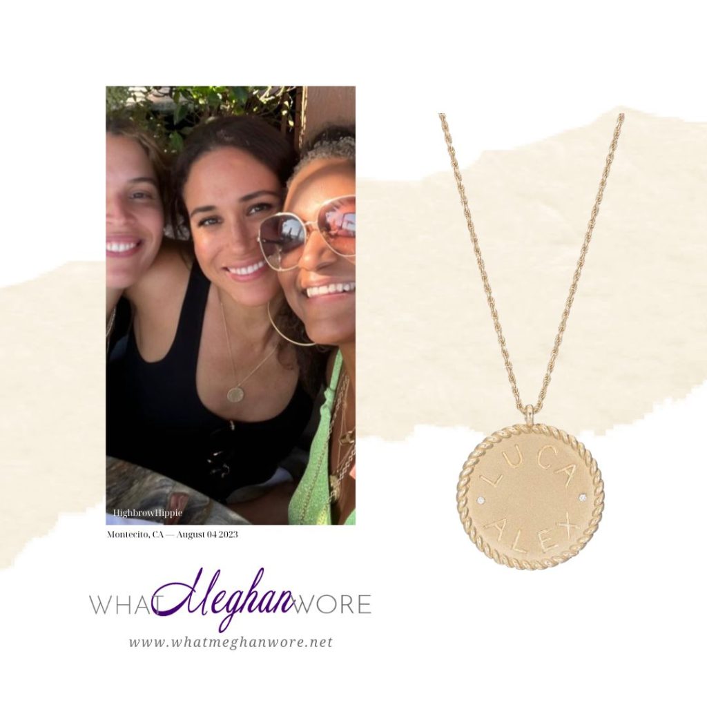 Meghan wore a new pendant from Ariel Gordon jewelry – the brand confirmed she wore the Imperial Disc pendant necklace, starting at $1840.