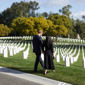 The Duke and Duchess of Sussex mark Remembrance Sunday with a private visit to Los Angeles National Cemetery. Harry, wearing…