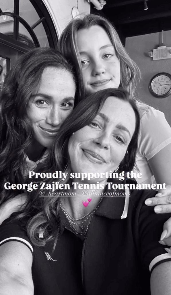 The Duke and Duchess of Sussex stepped out in Los Angeles today for the George Zajfen Tennis Tournament, a heartfelt annual event supporting their friend Kelly McKee Zajfen and Alliance for Children’s Rights.
