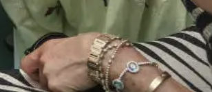 One other bracelet she has been wearing is a gold beaded bangle which has not yet been identified.