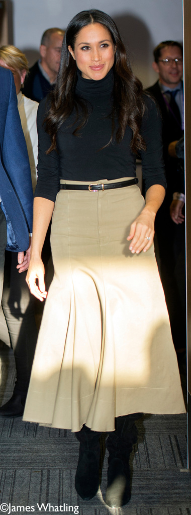 UPDATE 11/11: It has been confirmed that Meghan wore her Wolford Colorado Body turtleneck in black, $295. She first wore the piece for her and Harry’s first outing together in Nottingham, UK, November 2017.