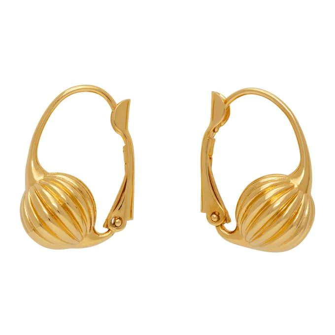 Meghan’s earrings are her Lanvin ‘Arpege Sleeper’ in gold (no longer available).