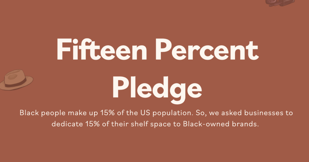 The Fifteen Percent Pledge organization, founded by Aurora James, urges U.S. retailers to commit at least fifteen percent of their shelf space to Black-owned businesses — a commitment to equity that’s about building economic opportunity where it’s long been denied.