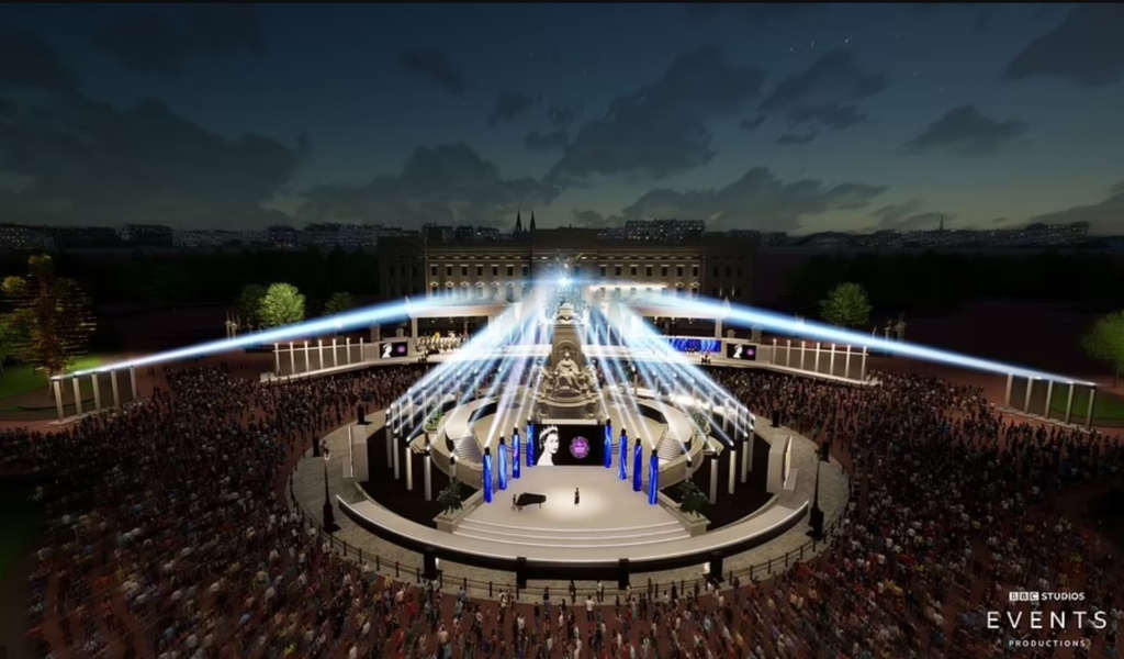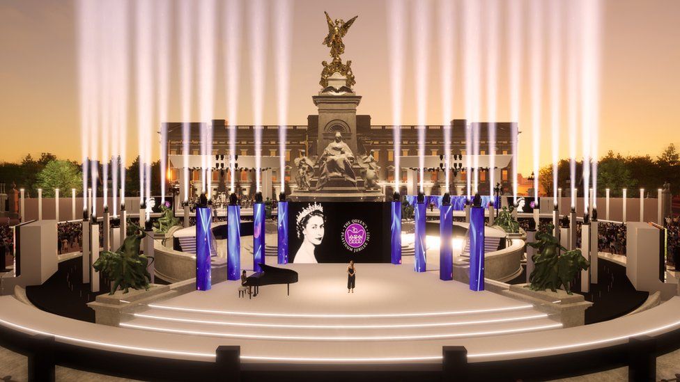 The celebration will see famous faces from the world of entertainment brought together to perform for a night of musical tributes to celebrate the Jubilee. 22,000 people will attend the event including 10,000 allocated in a public ballot and 5,000 tickets for key workers. And now for the first time, the BBC have released artist visuals of the impressive setting and stage where the acts will perform. The full line-up of acts will be announced by the BBC in the coming weeks.”