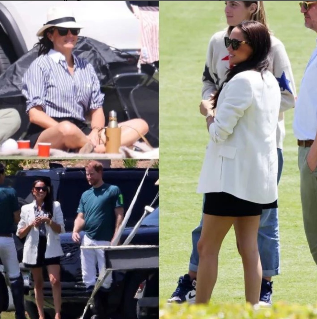 A side by side look at Meghan’s polo outfits. Which one is your favorite look?