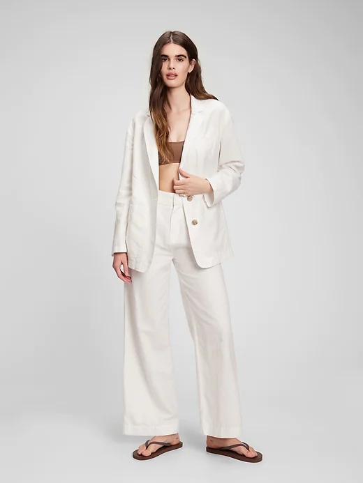 Try this jacket from Gap, $86, to get Meghan’s white blazer look.