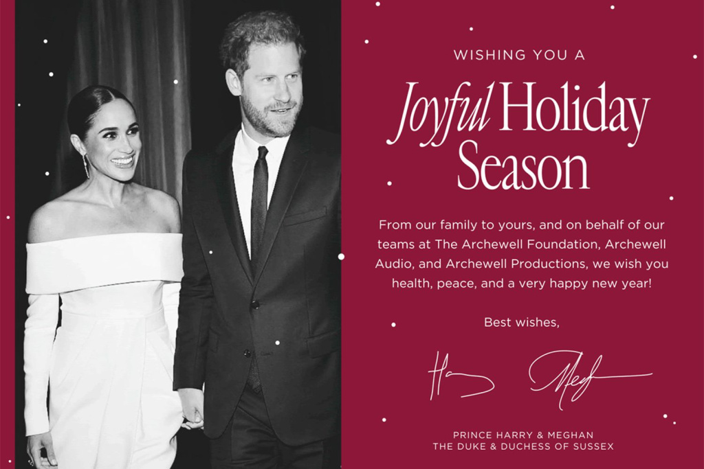 Once again, Meghan and Harry opted for a virtual greeting sent via email on behalf of their Archewell organization. The card carries warm wishes for a joyful holiday season, expressing gratitude for the support received throughout the year. To delve deeper into their impactful endeavors, recipients are directed to the couple’s annual Archewell Foundation impact report, complete with a video highlighting their charitable work over the past year.