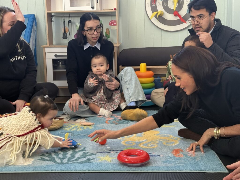 Below, Meghan plays with a little member of the Squamish Nation.