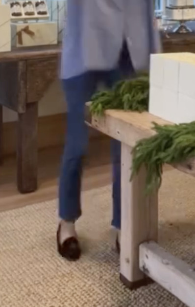 Her shoes appear to be a loafer style. They could be her Veronica Beard Penny Suede Loafer ($350) that she was seen wearing in With Love, Meghan, season 2, episode 6. More sizes available here.