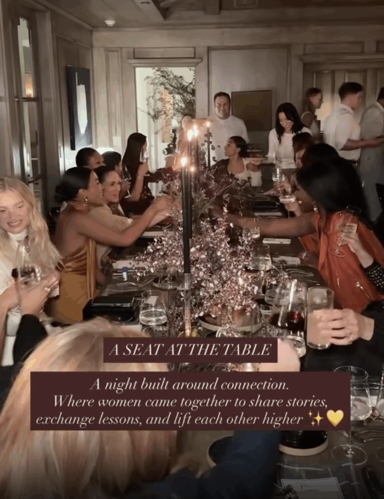 “This dinner series is about making that energy ours. About women coming together to share openly, trade resources, and help each other get things done… Here’s to more seats, more voices, and more women leading, building, and owning their power.”