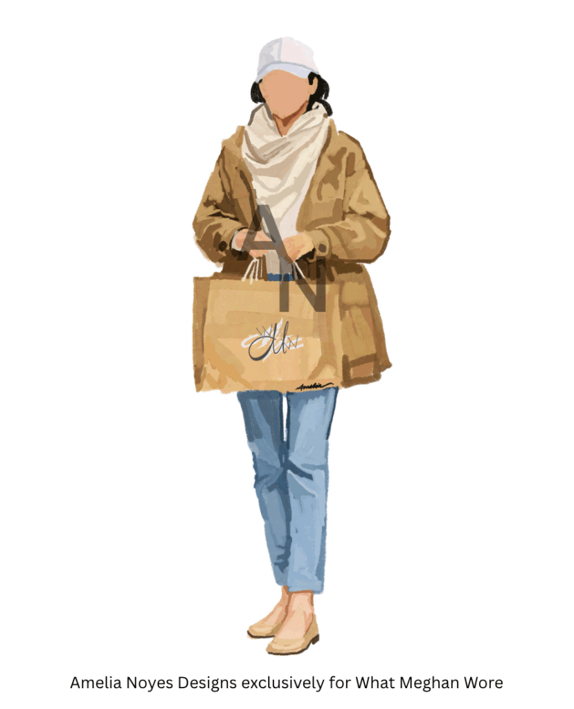 UPDATE 4/3: Additional photos revealed that Meghan carried her Polène ‘Cyme’ tote in cognac, $620.
