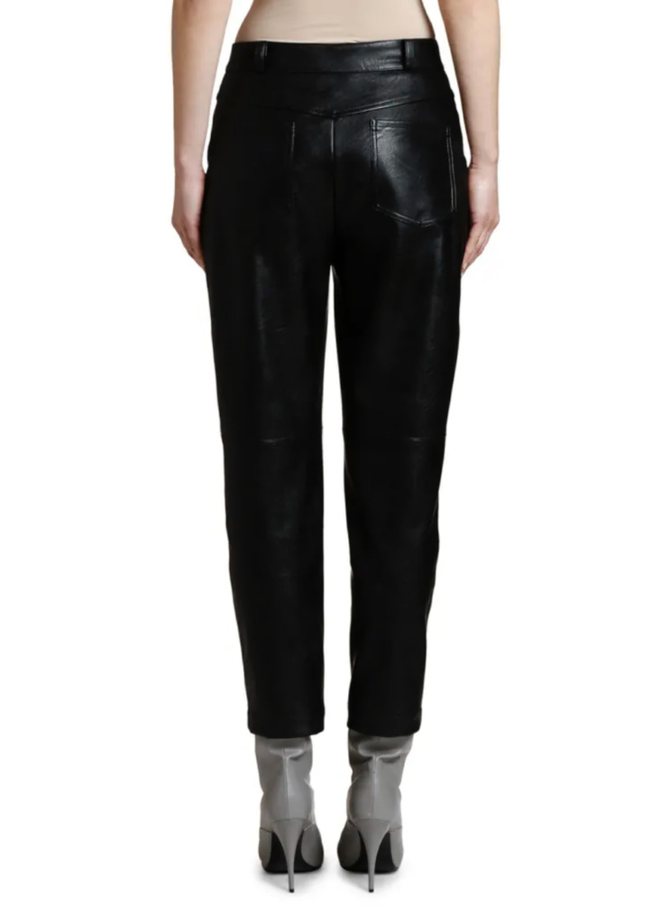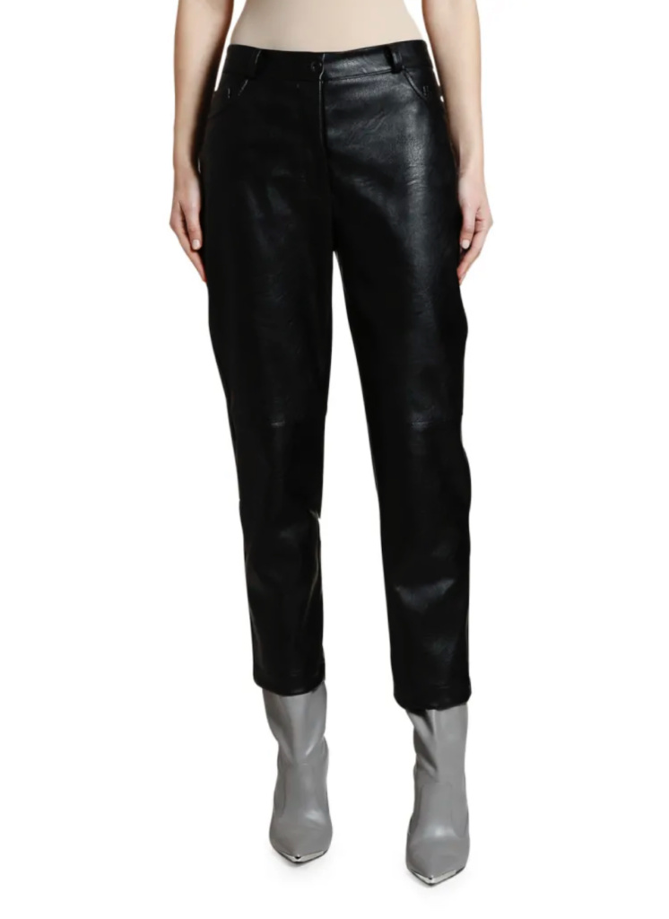 We show the Stella McCartney cropped faux leather pants, $925, as one option.