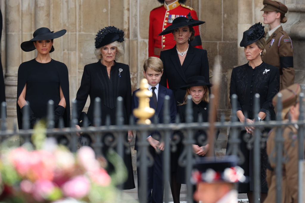 While the Duke processed behind the Queen’s coffin, Meghan arrived via car with Sophie, Countess of Wessex, wife of the Queen’s youngest son, Prince Edward.