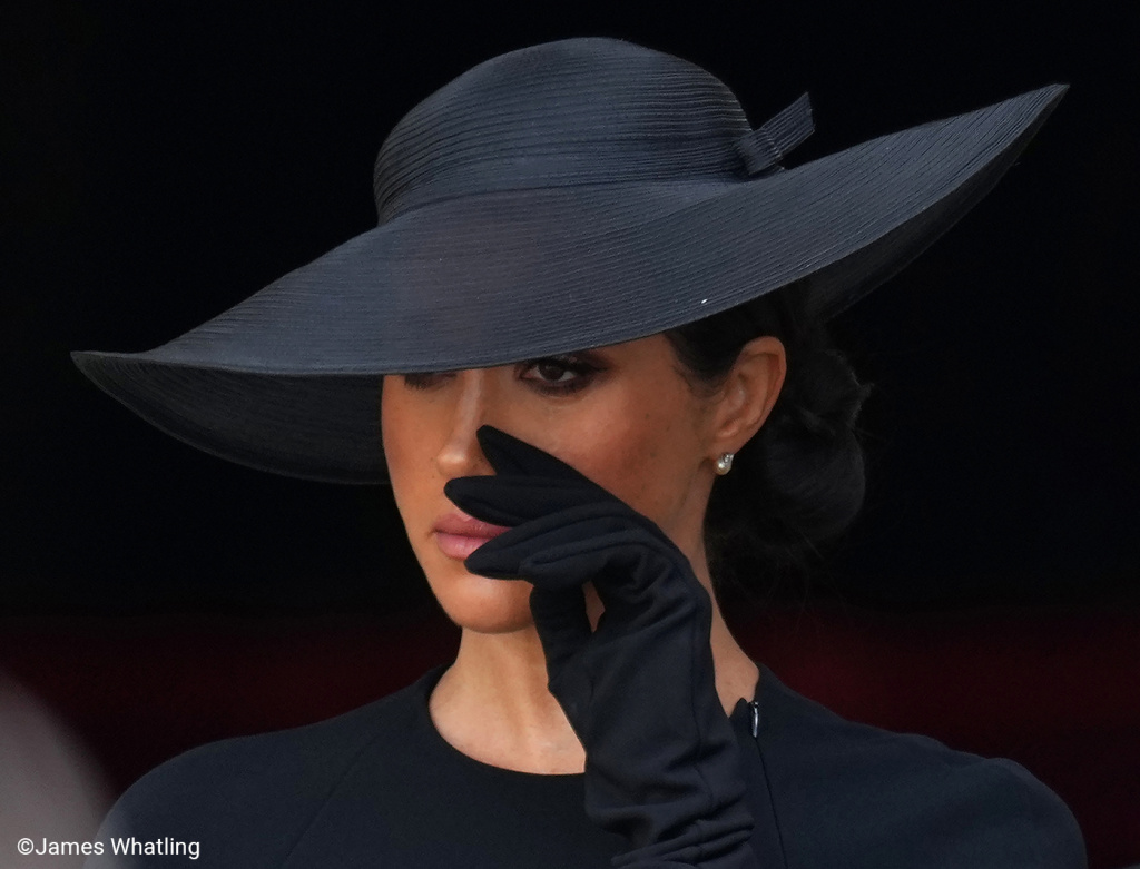 Meghan was seen, understandably, wiping away tears today; she similarly got emotional at a service to mark the beginning of Her Majesty’s lying in state at Westminster Hall on Wednesday, when she performed a deep curtsy to the Queen, symbolic of a lasting respect for the monarch.