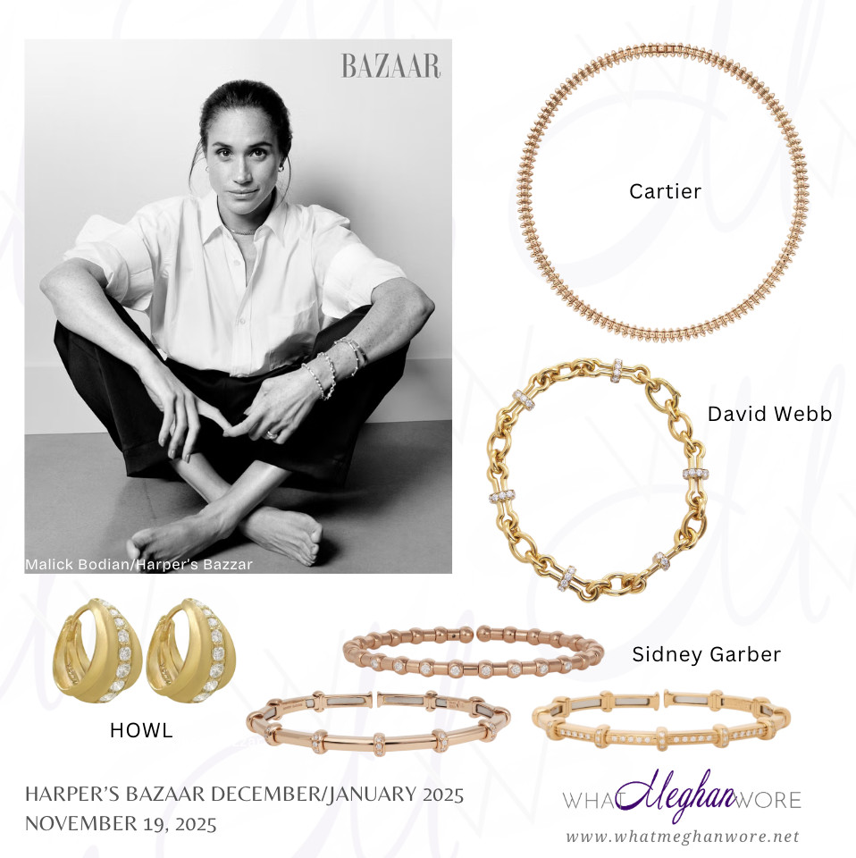 For the cover, Meghan is wearing Dior from Jonathan Anderson’s Spring/Summer 2026 collection for the cover of the December/January issue. Her earrings are from Tiffany & Co.’s Blue Book Collection earrings.
