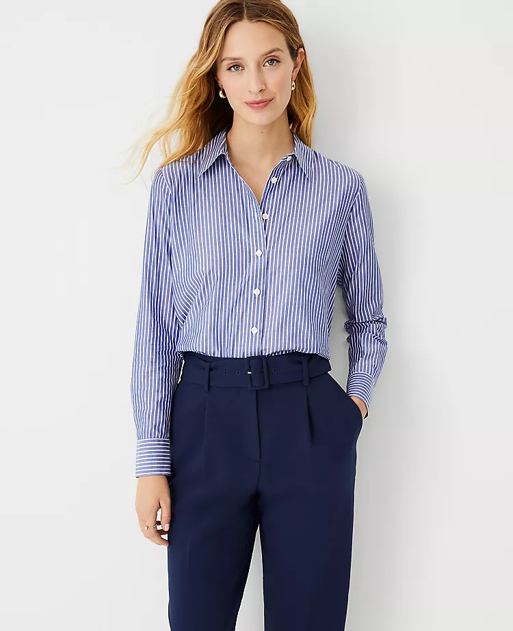 Hi Ann, I realized this after that fact – that the stripes don’t match. We found another one from Ann Taylor as a great alternative at an affordable price. I was thinking maybe it is Ralph Lauren but old RL. So many blue striped shirts! I believe Banana Republic has one too. Thanks, Susan