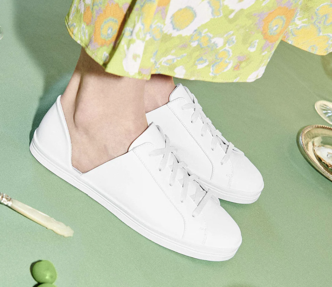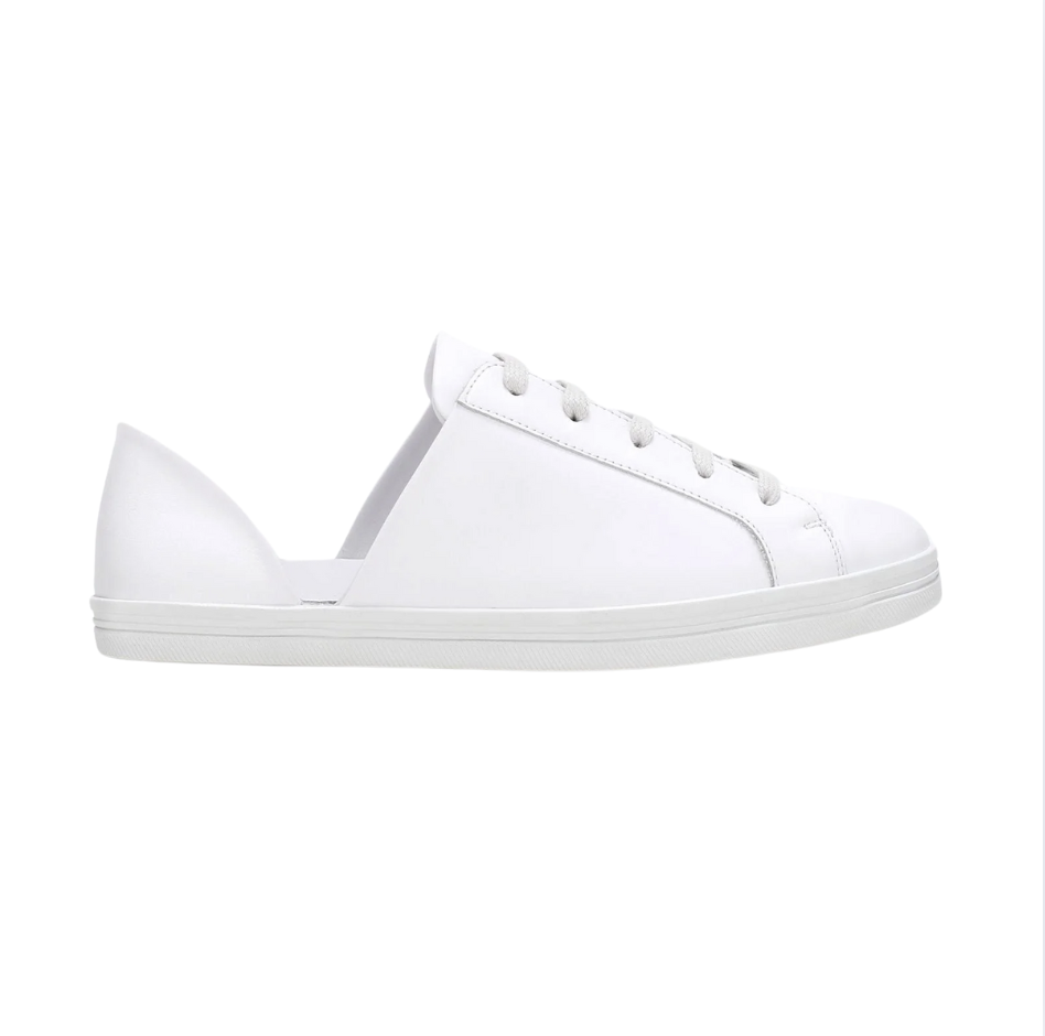 100% Italian leather in white calf. A classic sneaker, reinvented. The EDA in white calf has the brand’s iconic d’Orsay cut out, vulcanized rubber sole, and ultra comfortable padded leather footbed. retail $295