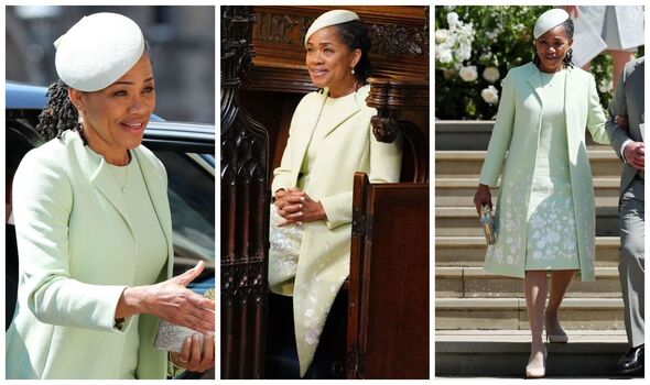 May 2018: Doria wore custom Oscar de la Renta — a hat, dress and matching coat in pistachio green — for Harry and Meghan’s wedding, May 19, 2018.
