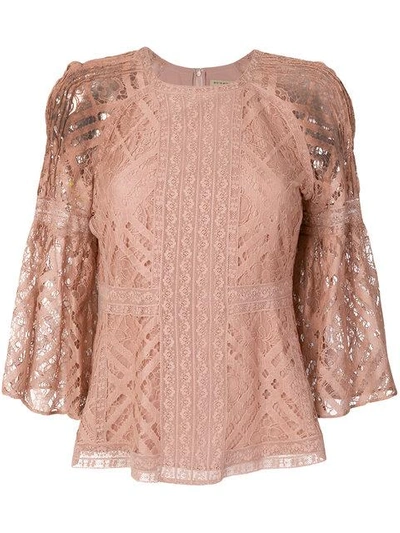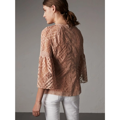 Expertly constructed from cotton blend and boasting an woven check lace, this bell sleeve lace blouse features a round neck, three-quarter length sleeves and a rear zip fastening (Polyamide 35% Spandex/Elastane 5% Polyester 95% Cotton 65%).