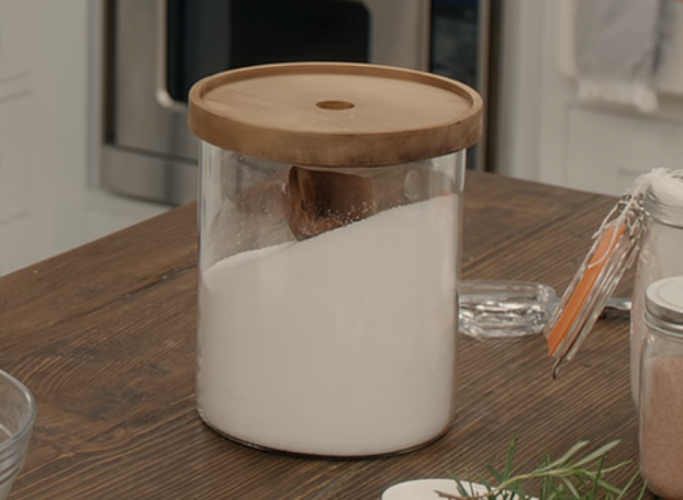 Meghan’s glass and wood lid canister is somewhat a common find. I’m thinking the canisters in the show are from Target — We’ve seen her with items from Target in the past.