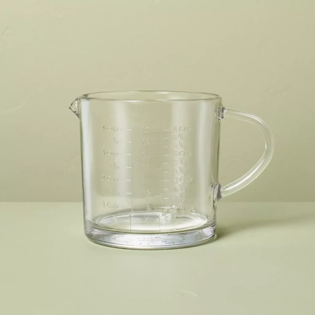 I would love to know what glass pitcher Megan used to measure water in the first episode. It’s about the same size as the pitcher you’ve found, but there is no wrap on the handle and there are air bubbles in the glass. Thank you!