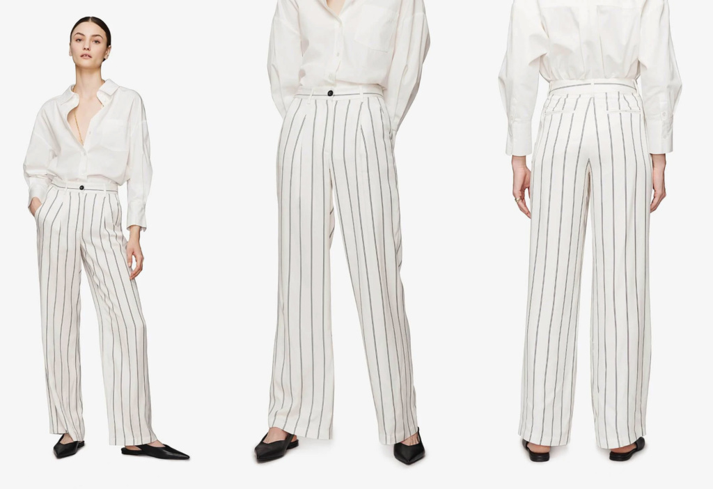 Pants: Anine Bing ‘Ryan’ Striped Wide-Leg Trousers, $249. Meghan first wore these trousers in August 2020 during an interview with Gloria Steinem – see our post here.