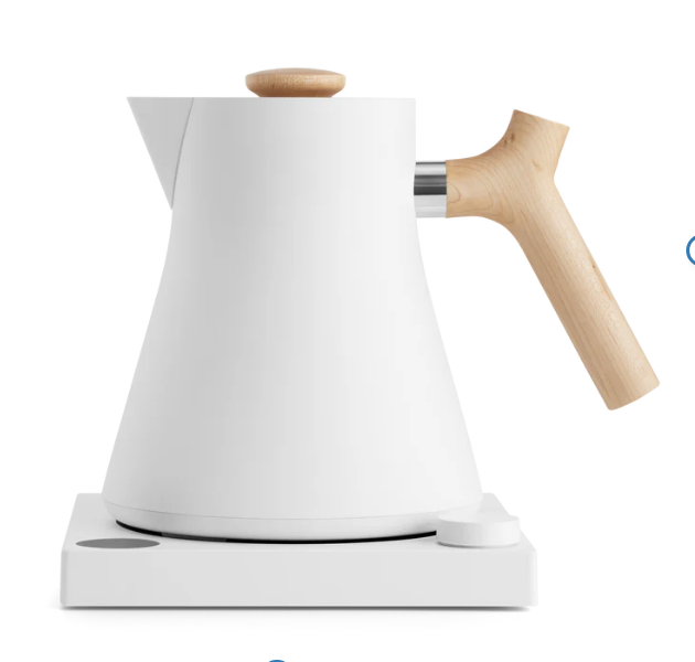 The electric teakettle seen in a few episodes is from Fellow Rebrew Corvo EKG Electric Kettle, reg $195 now $165.