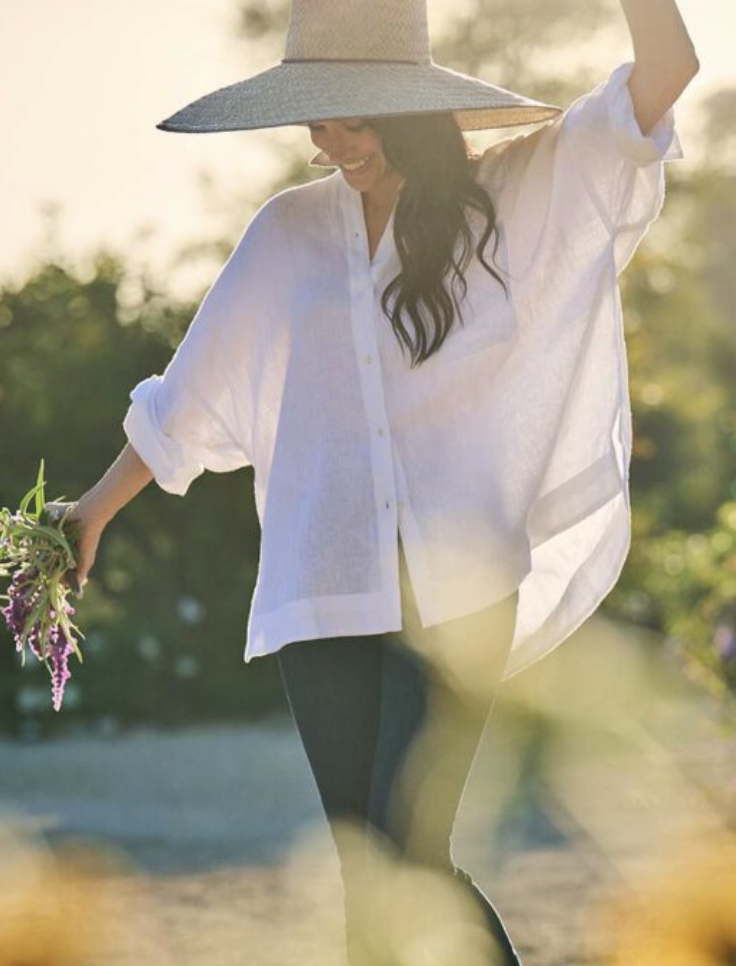 Here are a few options to “get the look” for Meghan’s linen top.